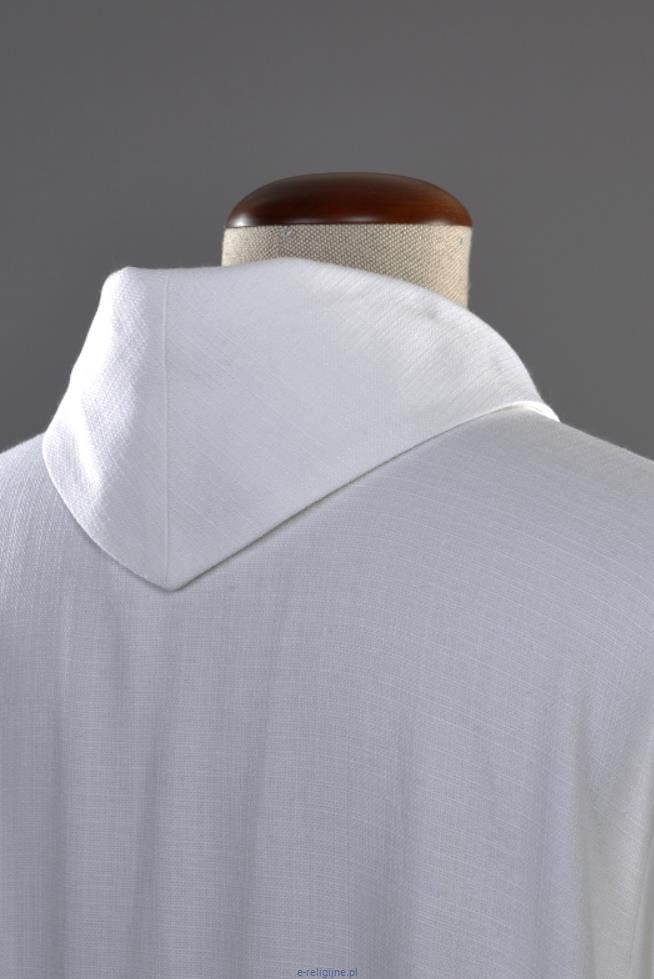 Lekka i przewiewna alba dla księdza z eleganckimi mankietami oraz pięknym kołnierzem.
