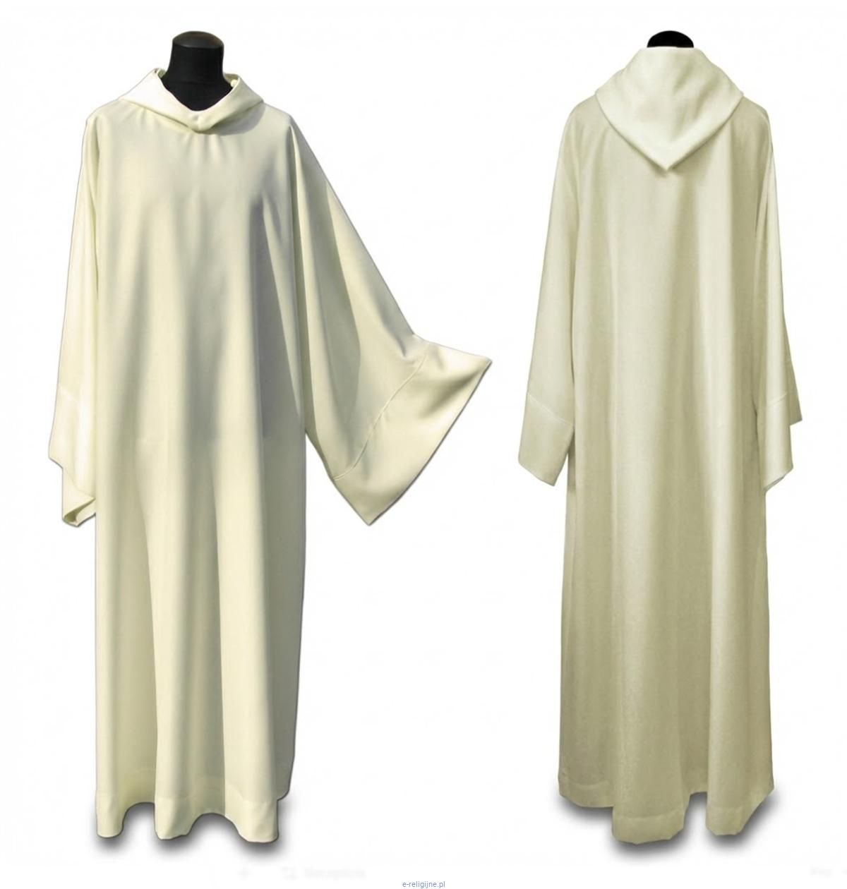 Detale: Duży, wykładany kaptur oraz bardzo szerokie rękawy (typ benedyktyński).