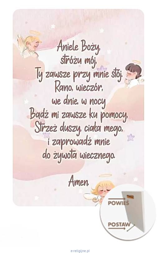 Anioł Stróż obrazek do powieszenia z modlitwą "Aniele Boży ..." MD4 (18 x 27 cm)