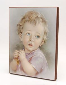 Obrazek Anioła Stróża. Obrazek naklejony na deskę. Wymiary 15,5 cm x 20 cm