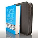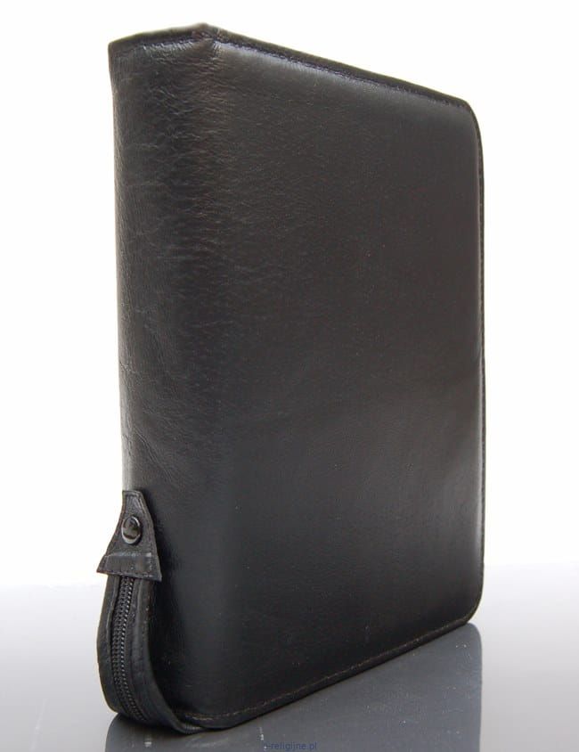 Zestaw składa się z Pisma Świętego z Wydawnictwa Pallottinum i okładki zasuwanej na zamek ze skóry naturalnej w kolorze czarnym.