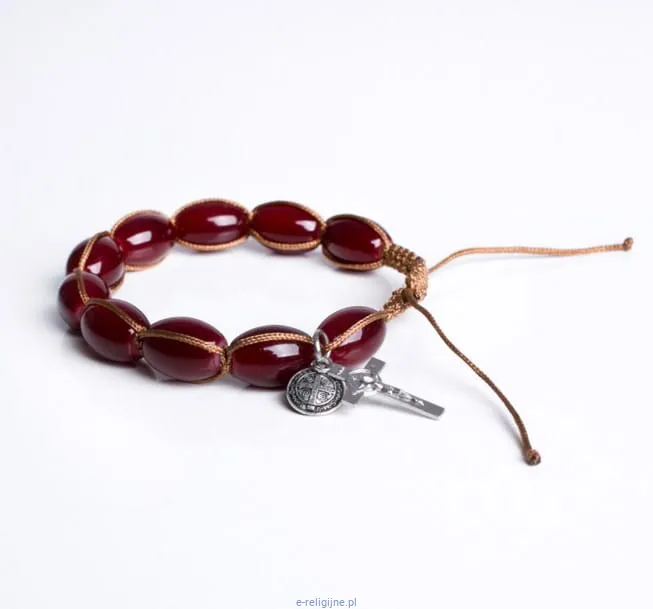 Bransoletka dziesiątka różańca z krzyżykiem i medalikiem Św. Benedykta BC669