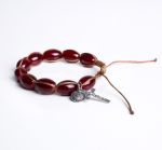 Piękna bransoletka przeznaczona dla kobiet z koralikami o wymiarach 1,5 cm x 1 cm. Medalik o średnicy 8 mm i krzyżyk 2 cm.