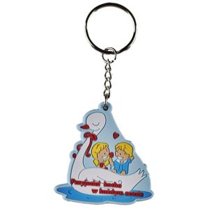 Breloczek nr. 3 Łabądź Breloczek jest wykonany z tworzywa PVC. Posiada metalowe kółko. Głównym zastosowaniem jest podczepienie kluczy. Wymiary ok. 6 x 6 cm