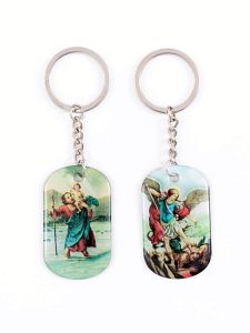Breloczek do kluczy ze św. Krzysztofem i św. Michałem Archaniołem.