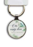 Na delikatnym, kwiatowym tle wygrawerowane słowa "On moje dni nasyca dobrami" niosą przesłanie wdzięczności i ufności. To nie tylko dodatek do kluczy - to codzienny dotyk łaski w Twoich dłoniach.