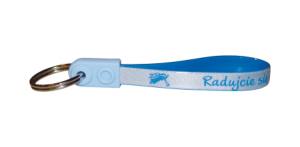 Breloczek religijny do kluczy gumowy w kształcie pętelki z cytatem "Radujcie się zawsze w Panu".