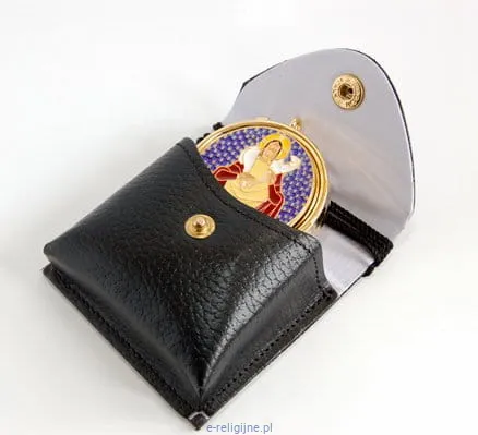 Mała bursa (8,5 cm x 8,5 cm) z cyborium pozłacanym ze wspaniałym wizerunkiem Chrystusa Dobrego Pasterza.