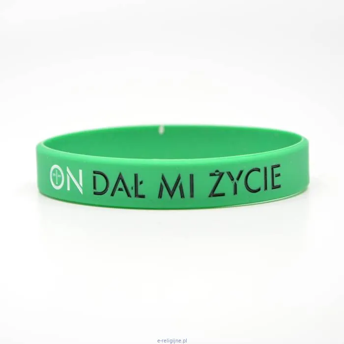 Bransoletka żelowa na rękę z napisem ON DAŁ MI ŻYCIE.