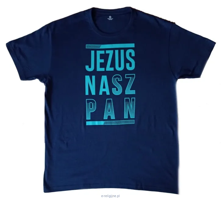 Chrześcijańska koszulka ewangelizacyjna z napisem Jezus nasz Pan. Przyjemny w dotyku materiał - 100% bawełny. Kolor koszulki - granatowy.
