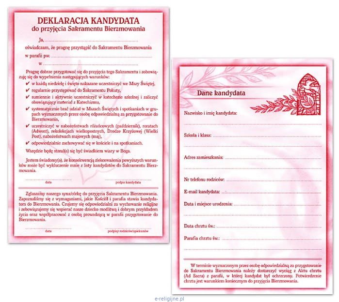 Deklaracja kandydata do bierzmowania (paczka 50 szt.) Hlondianum