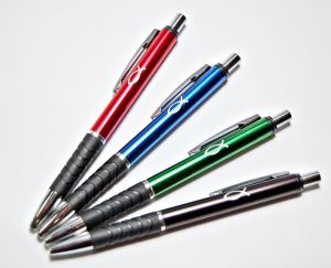 Długopis metalowy z religijnym emblematem Rybką - Wkład: niebieski. Do wyboru 4 kolorów długopisu: niebieski, czerwony, zielony, czarny