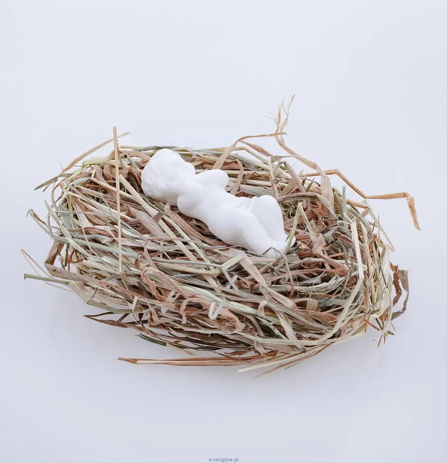 Dzieciątko Jezus na sianku (albastrowa figurka 8 cm razem z siankiem), figurka dzieciątka 4,5 cm