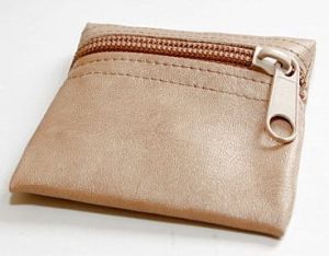 Etui na różaniec ze skaju w kolorze beżowym na zamek. Wymiary 7 cm x 7,5 cm.