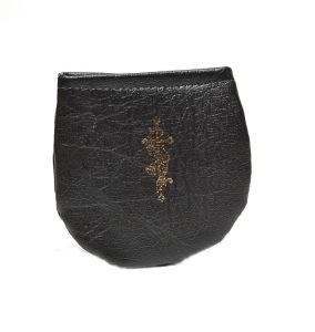 Etui na różaniec ze skaju w kolorze czarnym zapinane na rzep. Wymiary 8,5 cm x 8 cm
