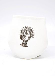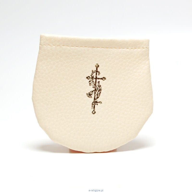 Etui na różaniec ze skaju w kolorze ecru lub białym zapinane na rzep.