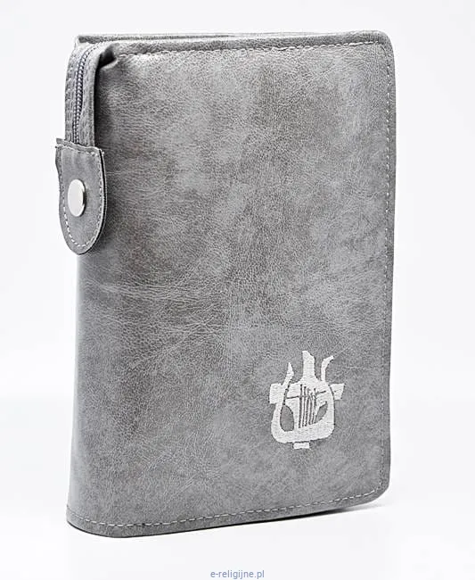 Funkcjonalna i wytrzymała okładka na brewiarz - Liturgię Godzin ze skaju w kolorze szarym z eleganckim haftem.