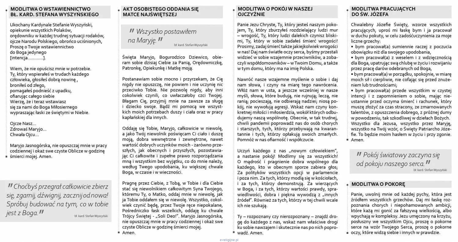 Folder składany Litania i Modlitwy do bł. kard. Stefana Wyszyńskiego (25 sztuk)