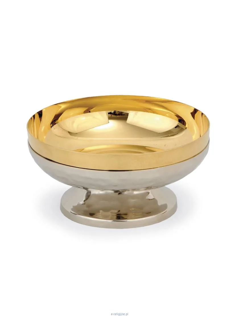 Elegancka, wysokiej jakości patena głęboka do kielicha pokryta srebrem Ag928 ze złoconym wnętrzem.