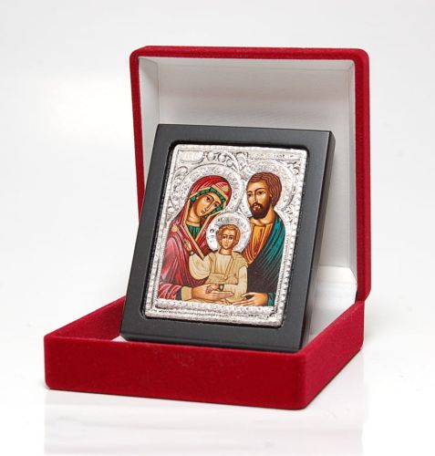 Ikona posiada certyfikat, jest posrebrzana srebrem o próbie 925.