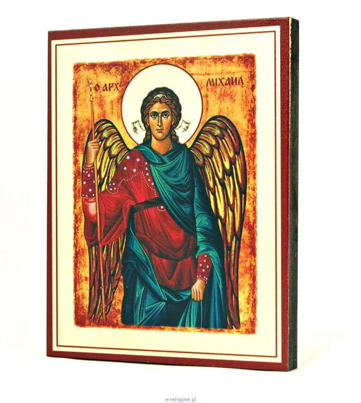 Ikona z wizerunkiem Michała Archanioła wykonana w technice łączącej tradycję pisania ikon z nowoczesną i unikalną techniką malarską.