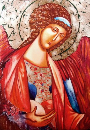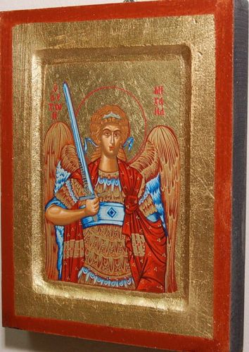 Ikona z wizerunkiem Michała Archanioła wykonana w technice łączącej tradycję pisania ikon z nowoczesną i unikalną techniką malarską.