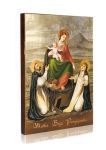 Wizerunek przedstawia siedzącą na tronie Madonnę. Na jej kolanach spoczywa Dzieciątko Jezus trzymające w rączkach różaniec św. Dominika, podczas gdy Maryja trzyma różaniec św. Katarzyny z Sieny.