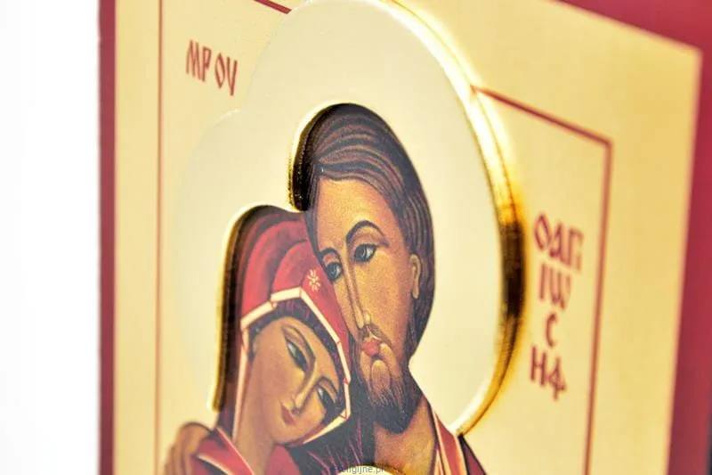 Ikona Świętej Rodziny wykonana w technice łączącej tradycję pisania ikon z nowoczesną i unikalną techniką malarską.