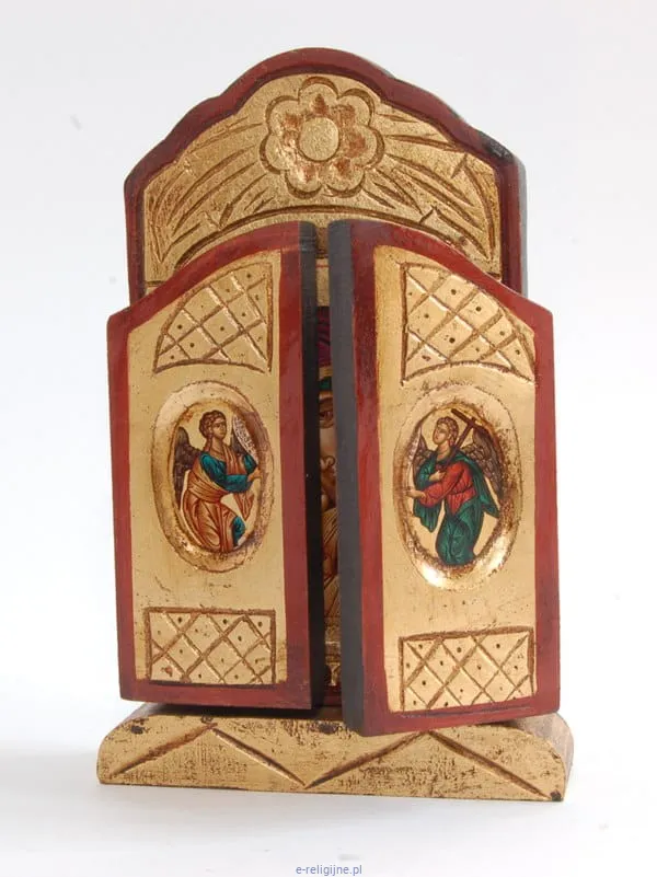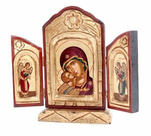 Ikona bizantyjska tryptyk - tren z wizerunkiem Matki Bożej z Dzieciątkiem. Na skrzydłach tryptyku znajdują się Archaniołowie: Michał i Gabriel.