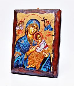 Bizantyjska ikona wykonana na drewnianej desce o grubości 2,5 cm. Posiada certyfikat autentyczności ręcznego wykonania.
