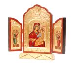 Ikona bizantyjska tryptyk - tren z wizerunkiem Matki Bożej Nieustającej Pomocy. Na skrzydłach tryptyku znajdują się Archaniołowie: Michał i Gabriel. Tryptyk wykonany w drewnie posiada certyfikat autentyczności ręcznego wykonania. Możliwość postawienia lub zawieszenia na ścianie.