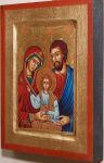 Bizantyjska ikona z wizerunkiem Świętej Rodziny. Wykonana na drewnianej desce o grubości 2,5 cm. Posiada certyfikat autentyczności ręcznego wykonania.