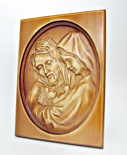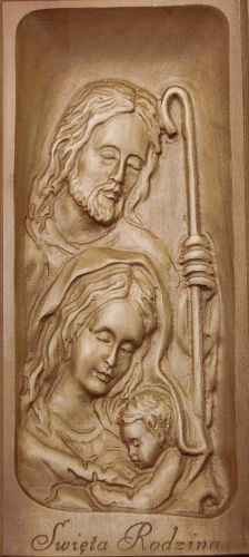 Płaskorzeźba wykonana w drewnie lipowym, bejcowana. Kolor - ciemny brąz.