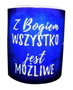 Kubek religijny z cytatem: Z Bogiem wszystko jest możliwe.
