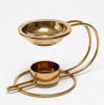 Kadzielnica składa się z trzech elementów: stabilnej okrągłej podstawy z uchwytem na standardową świeczkę tealight, esowato wygiętego ramienia podtrzymującego oraz zdejmowanej miseczki z perforowanym dnem. Całość wykonana jest z mosiądzu pokrytego złotą powłoką galwaniczną, która nadaje kadzielniczce elegancki, ciepły połysk.