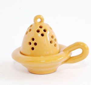 Gliniana kadzielniczka glazurowana w kolorze beżowym do domowego użytku.