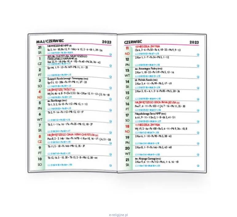 Kalendarz biblijny na 2023 rok podaje uwagi praktyczne, jak czytać Pismo Święte. Zawiera symbol wskazujący rangę liturgiczną danego dnia i odnośniki do liturgii słowa.
