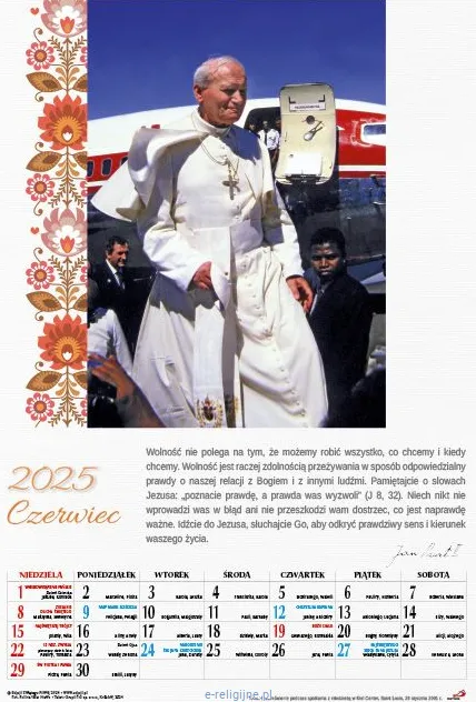 Kalendarz ścienny 2025 - Święty Jan Paweł II