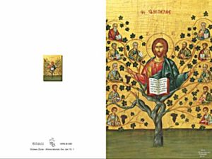 Karnet religijny z ikoną Chrystusa Drzewa Życia.