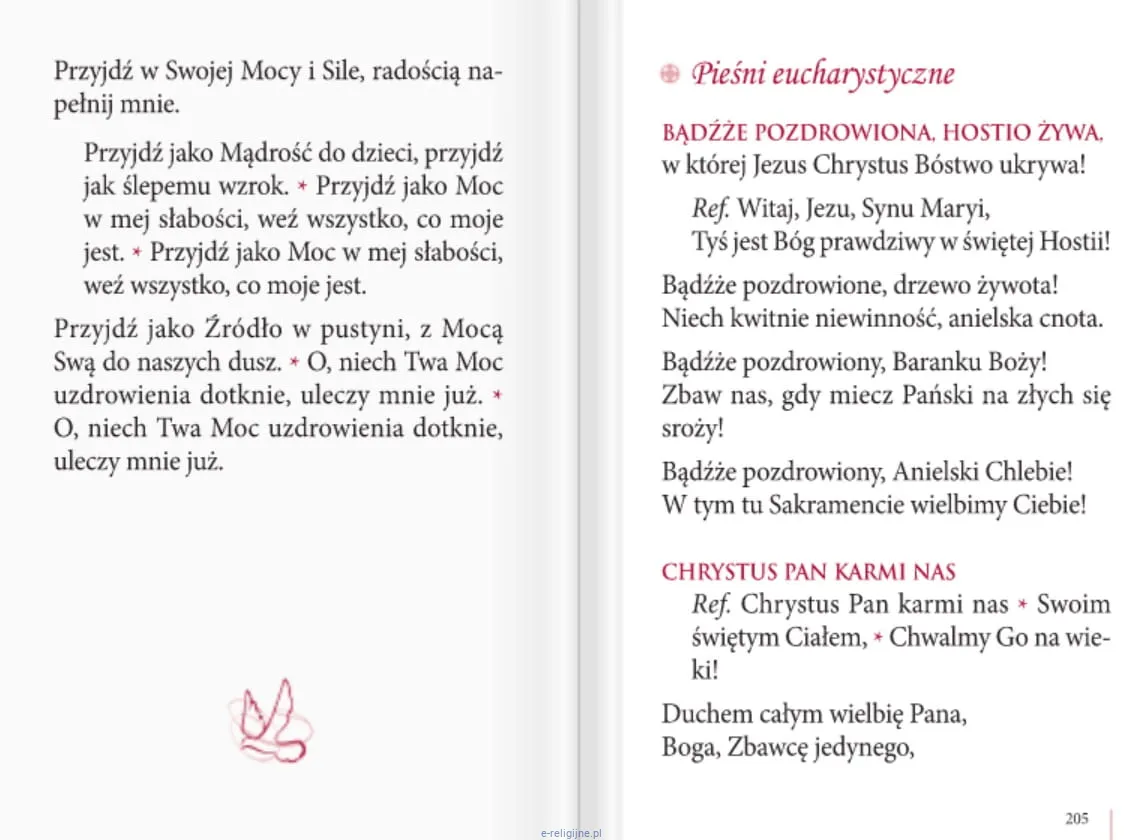 II część modlitewnika to śpiewnik podzielony na: pieśni na Adwent i Boże Narodzenie, pieśni na Wielki Post i Wielkanoc, pieśni do Ducha Świętego, pieśnie Eucharystyczne, pieśni ku czci Serca Pana Jezusa, pieśni do Matki Bożej oraz inne.