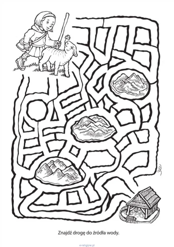 Tylko kredki lub pisaki. Dla najmłodszych (4–5 lat) najlepiej sprawdzą się grube kredki ołówkowe lub świecowe. W sklepie e-religijne.pl znajdziesz również Biblie dla maluchów, opowiadania biblijne i inne pomoce katechetyczne, które mogą uzupełnić pracę z tą kolorowanką.