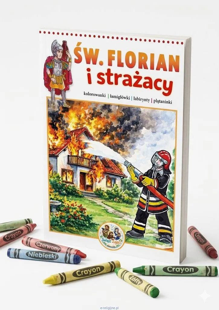 Tak, to jedna z głównych okazji zakupowych. 4 maja to jednocześnie Dzień Strażaka i liturgiczne wspomnienie świętego Floriana w kalendarzu Kościoła w Polsce. Kolorowanka łączy oba wymiary i działa jako prezent od dziadka strażaka dla wnuka, od rodziców dla dziecka biorącego udział w uroczystości w jednostce OSP lub od parafii dla dzieci na odpust.