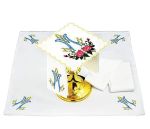 Komplet kielichowy składa się z: Palki, Puryfikaterza, Korporału oraz bawełnianego Ręczniczka.Palka wykończona jest praktycznym narożnikiem zapobiegającym zabrudzeniu w trakcie użytkowania.