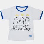 Koszulka religijna dziecięca "Każdy święty chodzi uśmiechnięty"