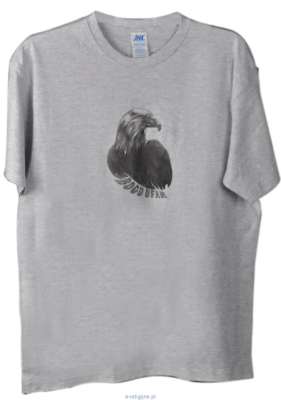 Koszulka z religijnym nadrukiem: "Bogu ufam". Dostępna w rozmiarach L. Koszulka bawełniana (100%) - gramatura 145g/m2