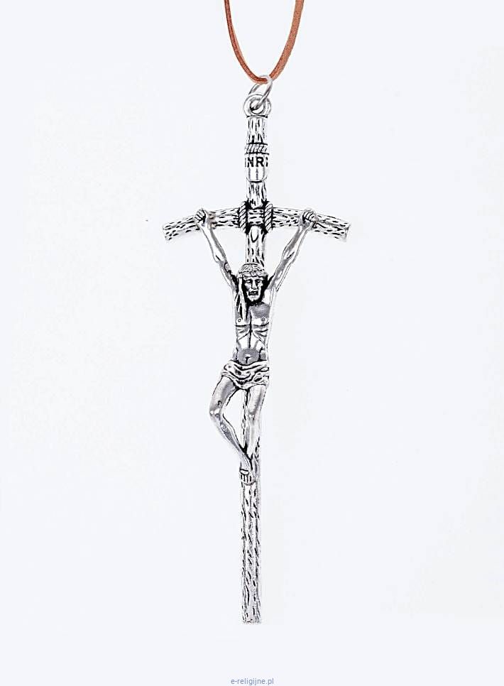 Krzyż do bierzmowania papieski ozdobny z rzemykiem.