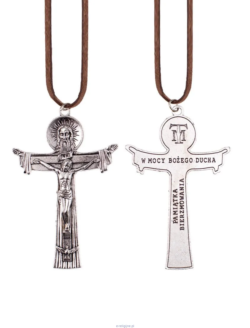 Metalowy krzyżyk na szyję z rzemykiem - Pamiątka Sakramentu Bierzmowania.