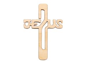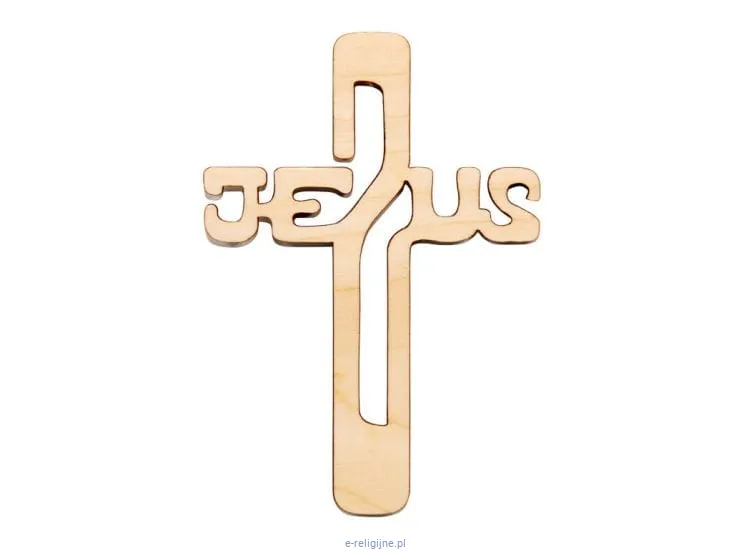 Krzyż drewniany wycinany JEZUS naturalny