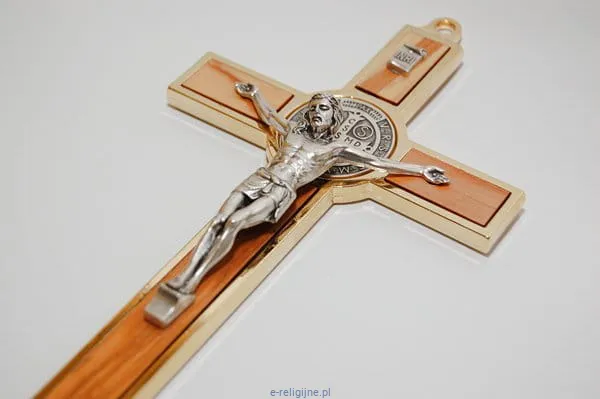Krzyż św. Benedykta na ścianę – solidny, drewniany krzyż z medalionem św. Benedykta i srebrnym korpusem Chrystusa. Jego elegancki design i duchowa symbolika czynią go idealnym elementem każdej katolickiej przestrzeni, przynosząc duchową ochronę i przypomnienie o wierze.