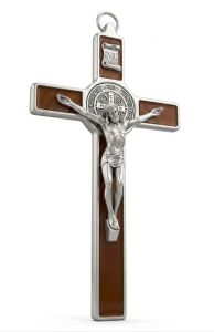 Krzyż św. Benedykta ze srebrnym korpusem Pana Jezusa. Produkt włoski. Wymiary krzyża 19,5 x 10 cm. Kolor - brązowy